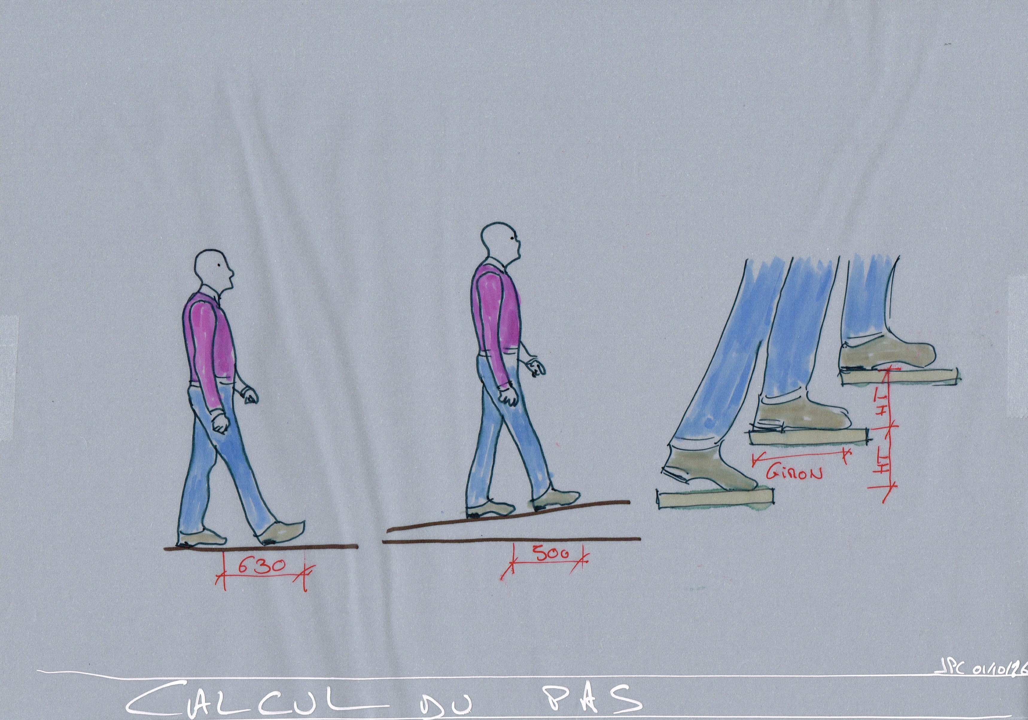 Pour faire simple, l'optimisation du confort et de la sécurité dans un escalier doit ressembler ou reproduire le démarche d'une personne sur une surface horizontale.